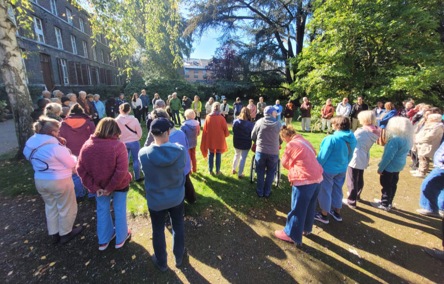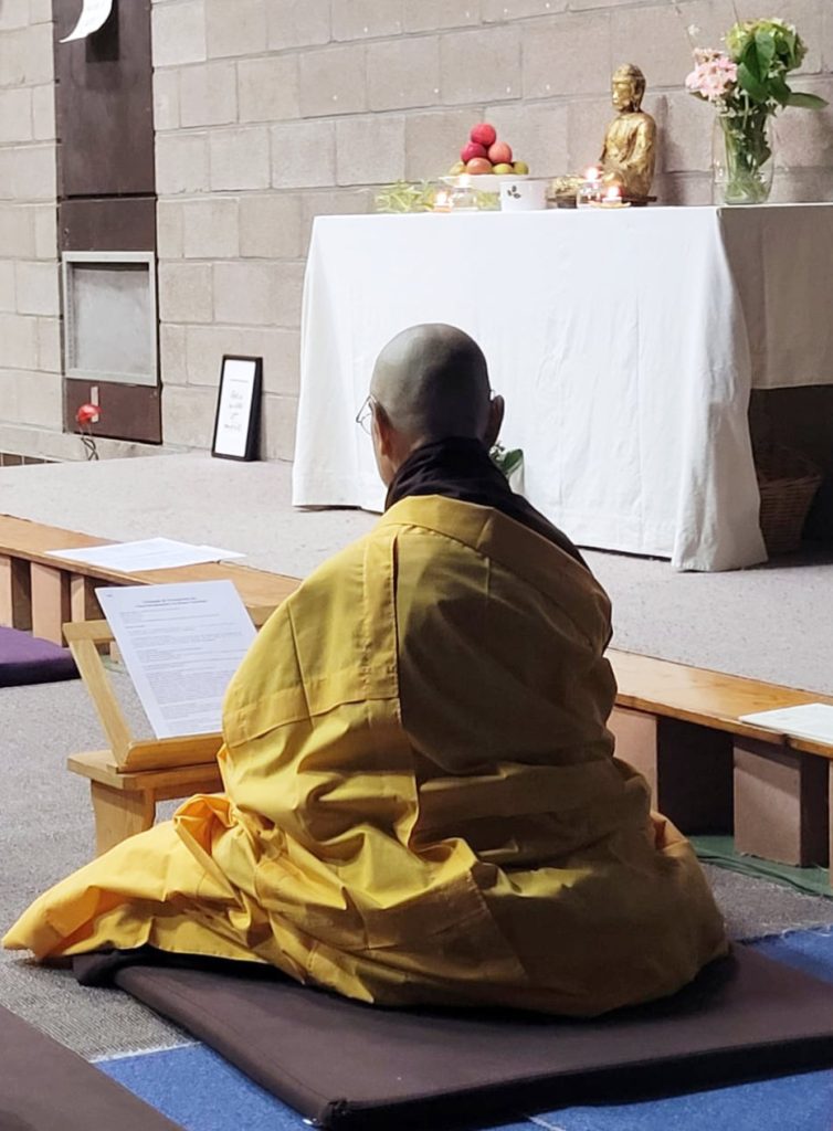 Ces deux jours passés dans le très beau cadre de l’Abbaye des Bénédictines nous ont donné l’occasion de pratiquer ensemble la méditation, la marche lente dans le paisible jardin des Soeurs bénédictines, les repas en pleine conscience, le partage du Dharma… Et aussi de recevoir un très bel enseignement de Sr Elisabeth. Tôt le dimanche matin, une cérémonie formelle a permis à douze pratiquants et pratiquantes de recevoir les Cinq Entraînements à la Pleine Conscience.